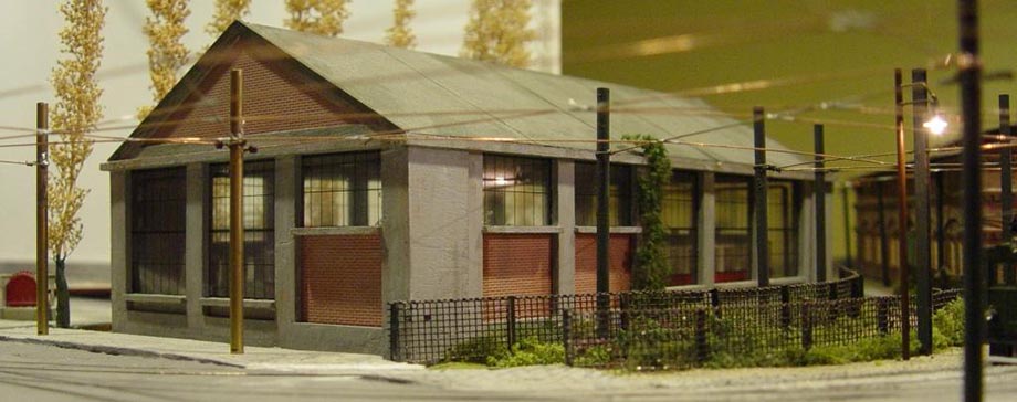 Er staan maar twee gebouwen op Module 1, de tramremise: één gekocht en één zelfbouw. Alle gebouwen zijn (over-)geschilderd en in meer of mindere mate geweatherd.
