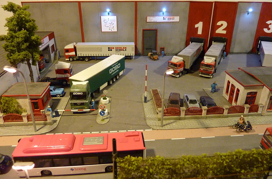 - Faller, Auto - Elektrik H. Schulz KG - werkplaats, waarvan alle delen zijn geschilderd in de kleuren van GS Logistics en geweatherd. Het doet dienst als de truckwerkplaats van GS Techniek en is daarom flink opgehoogd.