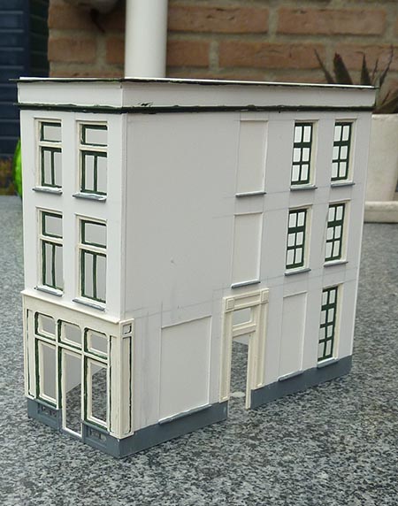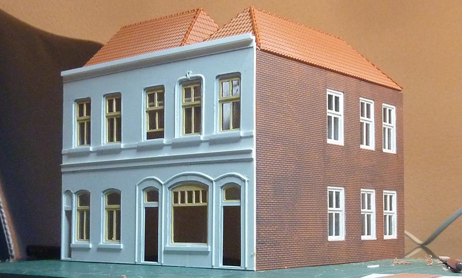 Het pand van Waelsteeds Jopie heeft een basis van styreen plaat, aan de voorzijde bedekt met Slaters baksteen card.