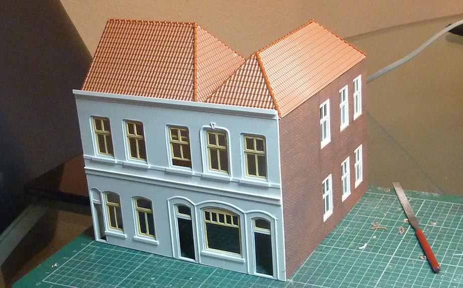 Het aanpassen van de huizen aan de plaatselijke omstandigheden (kit bashing) kost uiteindelijk meer tijd en moeite, dan complete zelfbouw van panden.