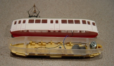 Korte proefritjes over het stukje Bemo-rails op de werkbank verliepen uitstekend. Nu kon de Roco-aandrijving worden aangepast aan de Waelstede-omstandigheden: massa via de rails en voeding via de bovenleiding. Er kon vervolgens een echte proefrit in Waelstede worden gereden. Dat werd een diepe teleurstelling: de Roco motor hing te laag en als een hangbuikzwijn bleef de wagen op elke overweg steken en schuurde overal over het asfalt.