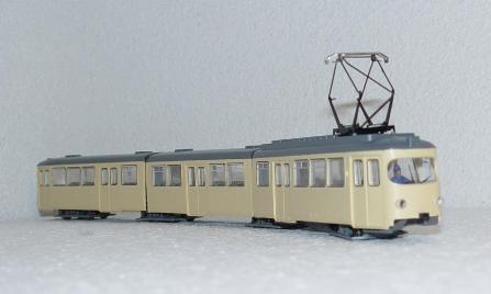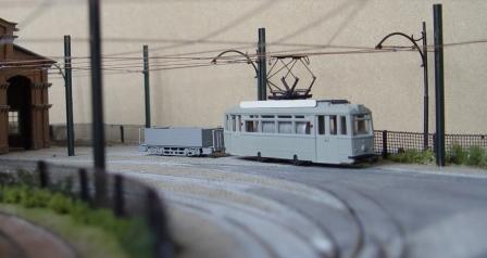 Vitrinemodel, bouwpakket, niet gemotoriseerd, omgebouwd tot pekeltram.